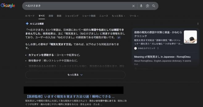 「へむけさまき」という誤字でも、検索するとちゃんと「眠気覚まし」の方法が出てくることが重要、というですか? [編集済]